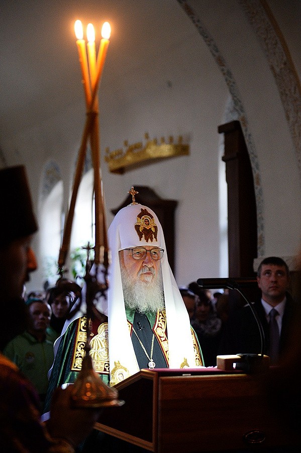 Предстоятель Русской Православной Церкви обратился к собравшимся с проповедью.
