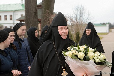 По окончании богослужения игумения Мария приветствовала Святейшего Владыку и преподнесла в дар Его Святейшеству икону с изображениями новомучеников, чьи жития связаны с Аносиной обителью: преподобномученицы Дарии (Зайцевой), священномученика Серафима (Звездинского), преподобномученика Евфросина (Антонова), преподобномученицы Татианы (Фомичевой), – сосуд для омовения рук, созданный прихожанами монастыря, и книгу клирика обители иерея Георгия Кириндаса «Аносинские беседы».