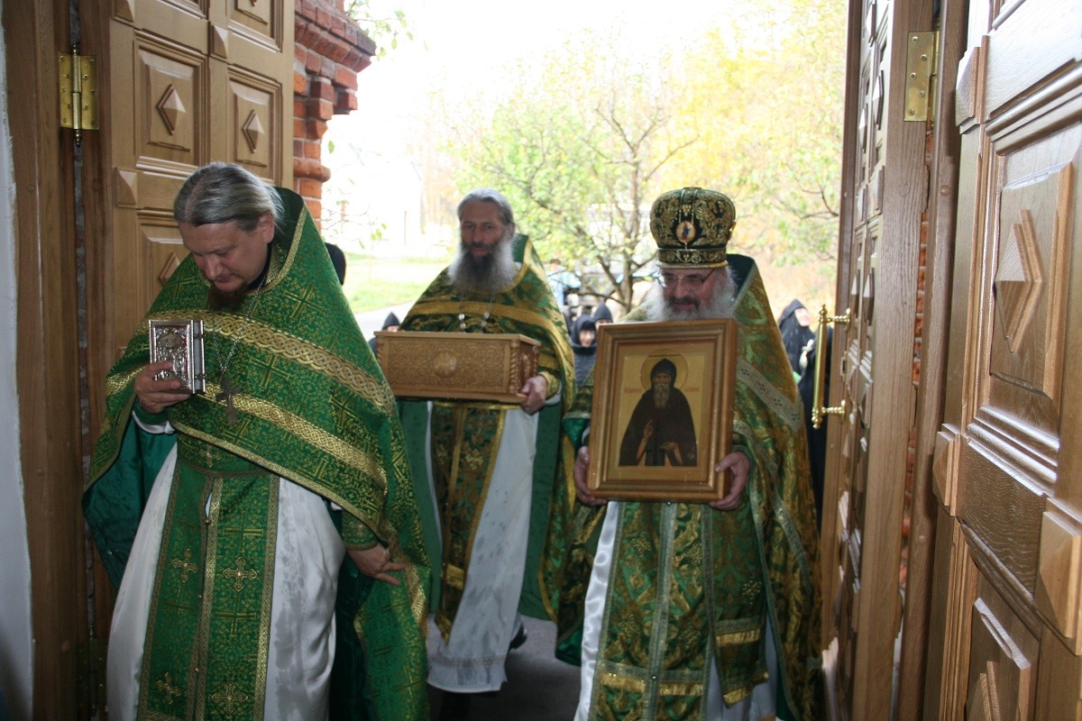 В этом году специально к дню памяти святого сестрами обители был написан образ преподобного Амвросия и установлен у мощевика.