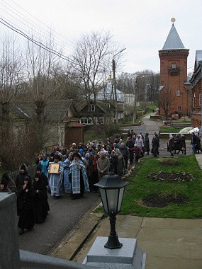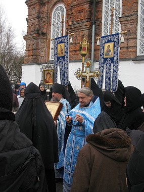 По окончании Литургии был совершен крестный ход вокруг Казанского собора обители.