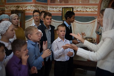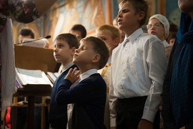 Богослужебные песнопения исполнил хор детей дома-интерната под управлением регента О.М. Мухиной.