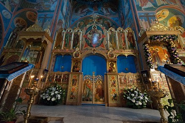 В храме хранятся святыни: ковчег с мощами святых и крест-мощевик, к которым дети любят прикладываться во время службы. Иконостас здесь особый – с удивительно красивыми иконами. По обеим сторонам Царских врат устроены большие открытые пространства, которые дают возможность детям заглянуть внутрь алтаря. Такого «прозрачного» иконостаса больше нет нигде. Благословение на необычную работу, как и на все строительство, дал наместник Троице-Сергиевой Лавры архиепископ Сергиево-Посадский Феогност.