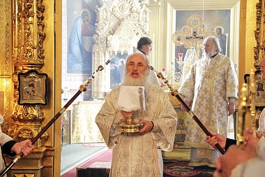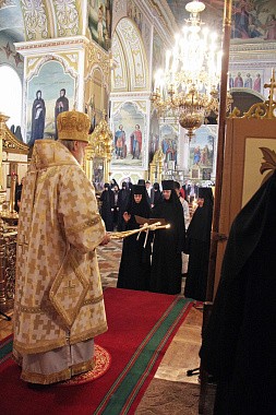 Его Высокопреосвященству сослужили: епископ Фастовский Дамиан, монастырское и приезжее духовенство.