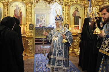 В завершение Высокопреосвященнейший владыка поздравил настоятельницу монастыря игумению Рафаилу (Хильчук), насельниц обители, духовенство и всех молящихся с праздником.