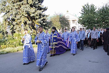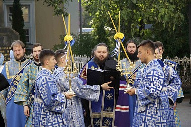 По окончании богослужения был совершен крестный ход с обнесением чудотворной Плащаницы Божией Матери вокруг храма.