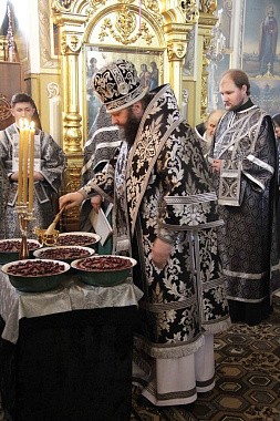 По окончании Литургии был отслужен молебен великомученику Феодору Тирону и освящено коливо.