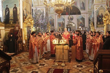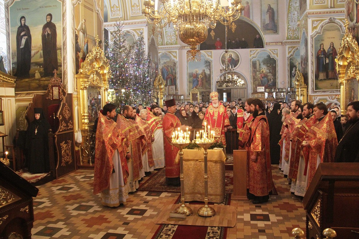 По окончании богослужения Его Высокопреосвященство произнес проповедь и поздравил настоятельницу монастыря игумению Рафаилу (Хильчук) с сестрами, всех прихожан и гостей со светлым праздником Рождества Христова.