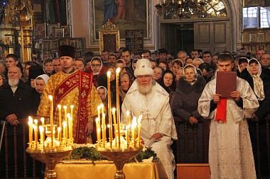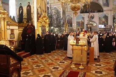 По окончании богослужения Его Высокопреосвященство поздравил монастырского духовника протоиерея Иосифа Богаченко с днем Ангела. Затем произнес проповедь и поздравил настоятельницу монастыря игумению Рафаилу (Хильчук) с сестрами, всех прихожан и гостей со светлым праздником Рождества Христова.