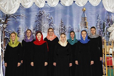 Для гостей и всех желающих в актовом зале Регентско-катехизаторского Духовного училища при монастыре воспитанницами училища и детьми монастырской Воскресной школы был представлен концерт «Рождественская елка».