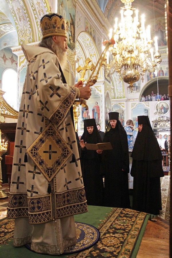 Затем Высокопреосвященнейший митрополит Павел в своем ответном слове выразил благодарность Его Святейшеству от имени настоятельницы монастыря игумении Рафаилы (Хильчук), служащих архиереев, духовенства и боголюбивой паствы за любовь, переживания и усердные молитвы о мире на Украине.