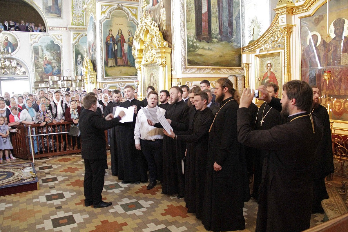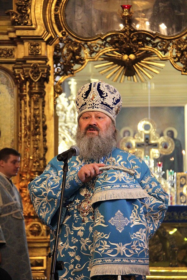 Его Высокопреосвященству сослужили: митрополит Днепропетровский и Павлоградский Ириней, митрополит Ровенский и Острожский Варфоломей, митрополит Екатеринбургский и Верхотурский Кирилл, архиепископ Сергиево-Посадский Феогност, архиепископ Бучанский Пантелеимон, архиепископ Владимир-Волынский и Ковельский Владимир, архиепископ Городницкий Александр, епископ Фастовский Дамиан, епископ Вознесенский и Первомайский Алексий и сонм духовенства.