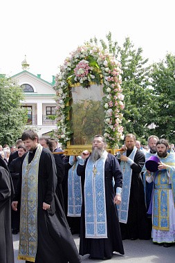 В завершение богослужения состоялся праздничный крестный ход с обнесением иконы Божией Матери «Споручница грешных» Корецкой вокруг монастырского храма.