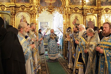 Накануне праздника в обитель по благословению Святейшего Патриарха Московского и всея Руси Кирилла прибыли митрополит Екатеринбургский и Верхотурский Кирилл и председатель Синодального отдела по монастырям и монашеству архиепископ Сергиево-Посадский Феогност с сопровождающими.