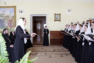 Перед отъездом глава Смоленской митрополии посетил Регентско-катехизаторское духовное училище при Корецком монастыре, воспитанницами которого был представлен гостям концерт духовной музыки.
