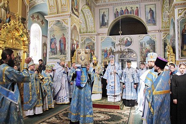 По окончании Литургии перед чудотворным образом Божией Матери «Споручница грешных» был отслужен праздничный молебен, в заключение которого митрополит Исидор передал благословение Святейшего Патриарха Московского и всея Руси Кирилла и поздравил настоятельницу, сестер обители и всех верующих с праздником, подарив на молитвенную память икону сщмч. Серафима Остроумова.