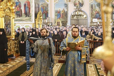 Накануне вечером владыка Павел возглавил в обители всенощное бдение с акафистом перед Корецкой иконой Пресвятой Богородицы.