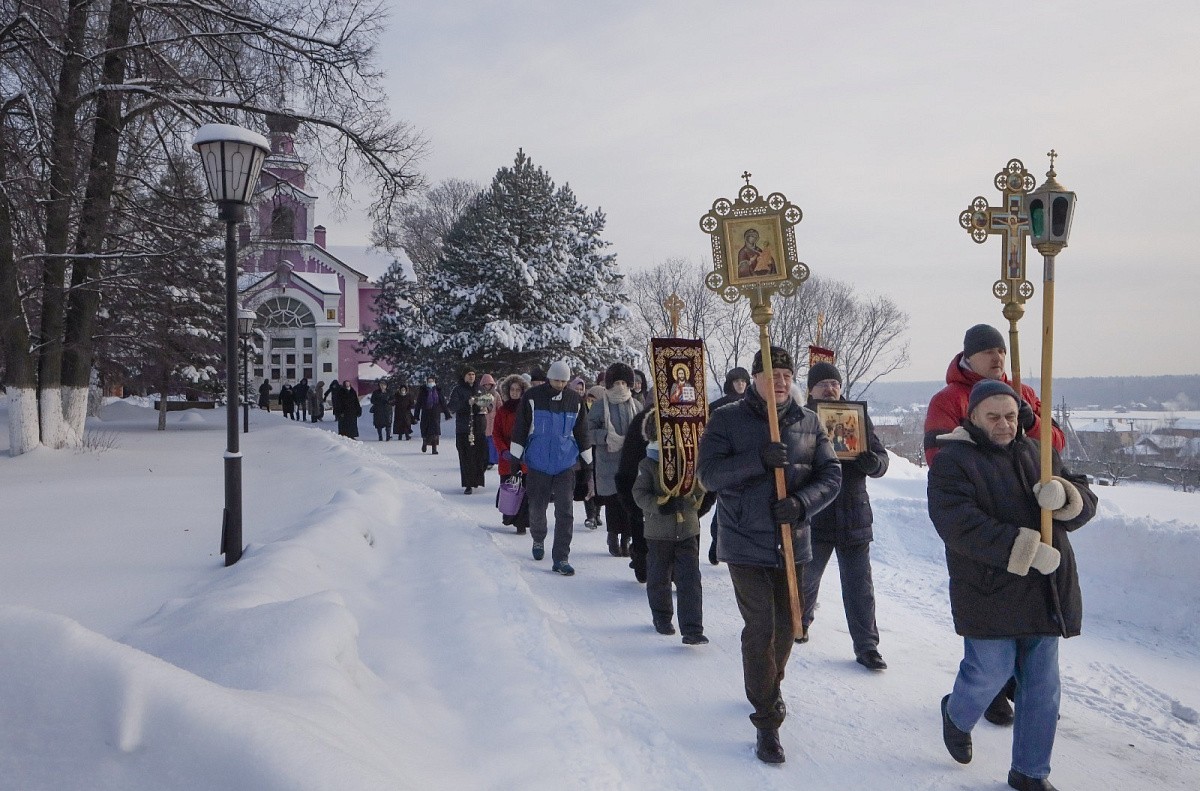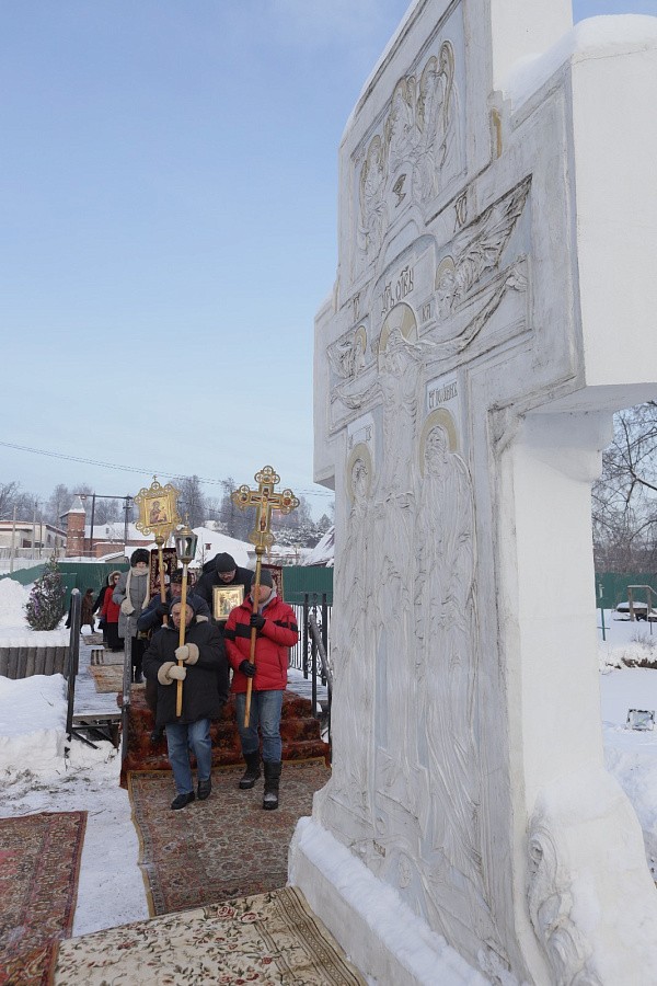 Прихожане вместе с настоятельницей монастыря игуменией Екатериной (Чайниковой) и сестрами обители крестным ходом прошли на приготовленную иордань – монастырский пруд с купальней в честь святого Предтечи и Крестителя Господня Иоанна. На пруду был совершен чин великого освящения воды. Эта вода называется агиасмой, или Крещенской водой. Водоосвящение в Церкви под влиянием Иерусалимского устава происходит два раза: в Крещенский сочельник и сам праздник Богоявления.