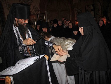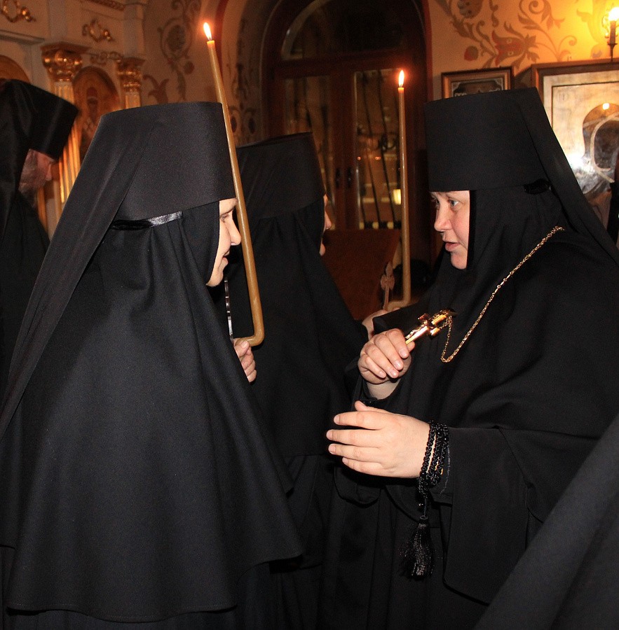 В этот день перед началом Великого повечерия настоятельница монастыря игумения Екатерина (Чайникова) обратилась к готовящимся принять постриг сестрам со словами наставления и благословила каждую из них иконой Пресвятой Богородицы.