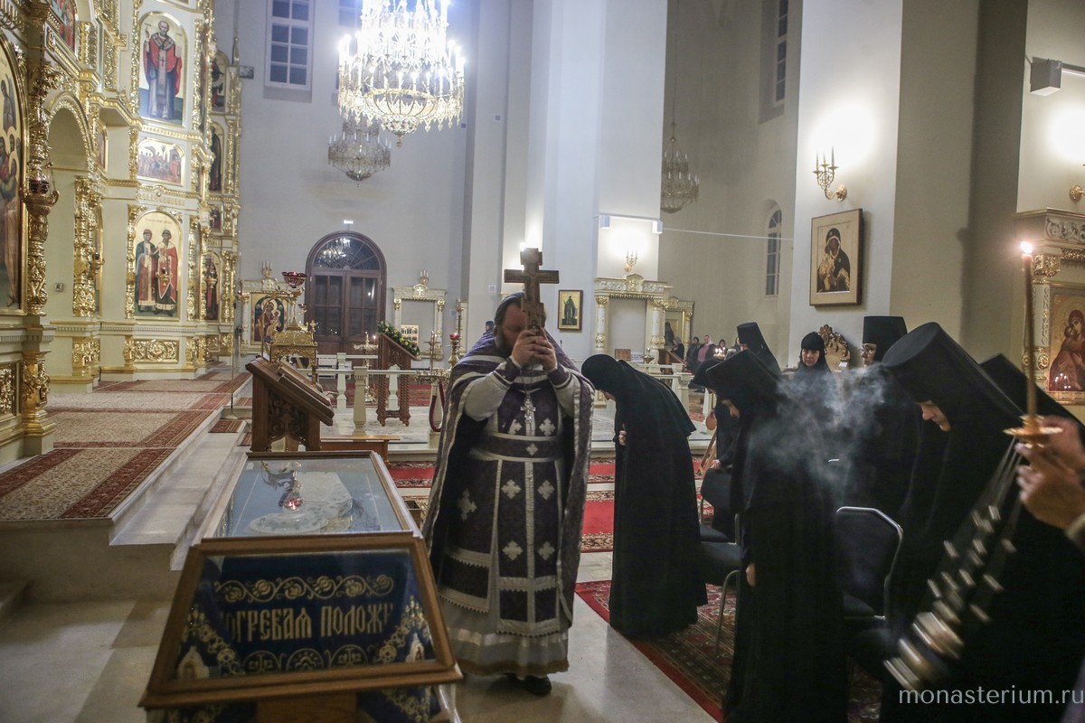 18 марта 2017 года, накануне Недели 3-й Великого поста, Крестопоклонной, в Кресто-Воздвиженском Иерусалимском ставропигиальном женском монастыре состоялось всенощное бдение.