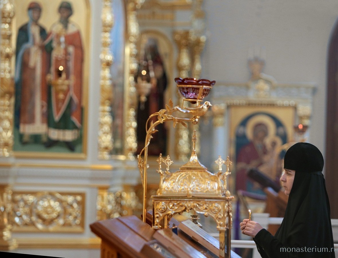 В Крестовоздвиженском храме монастыря за всенощной молились настоятельница обители игумения Екатерина (Чайникова) с сестрами, прихожане и гости монастыря.
