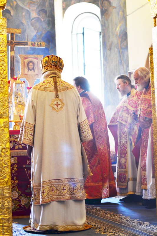 Архипастырю сослужили протоиерей Николай Кречетов, благочинный Москворецкого округа и настоятель храма Преображения Господня на Болвановке, и клирики обители: протоиерей Александр Дубинин, иерей Тихон Кречетов и иерей Дионисий Денисов.