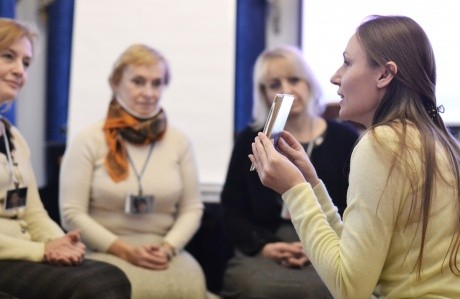 По окончании доклада Анна в интерактивной форме показала, как на практике проходят занятия. Много внимания уделяется визуальным образам как самих святых (иконы, фотографии), так и связанных с ними предметов. Например, рассказывая о преподобномученице Великой княгине Елисавете Феодоровне, основательнице Марфо-Мариинской обители милосердия, преподаватели обязательно дают детям подержать и понюхать ее любимый цветок – лилию, а затем показывают детям портреты подвижницы.