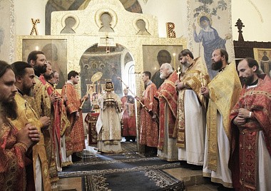 Его Преосвященству сослужили: благочинный храмов Москворецкого церковного округа протоиерей Николай Кречетов, клирики Марфо-Мариинской обители и других столичных храмов.