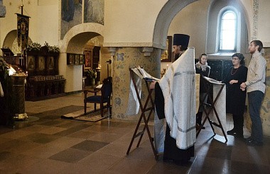 Молебен для сотрудников монастыря и медицинского центра «Милосердие» в Покровском соборе обители совершил клирик монастыря иерей Дионисий Денисов.