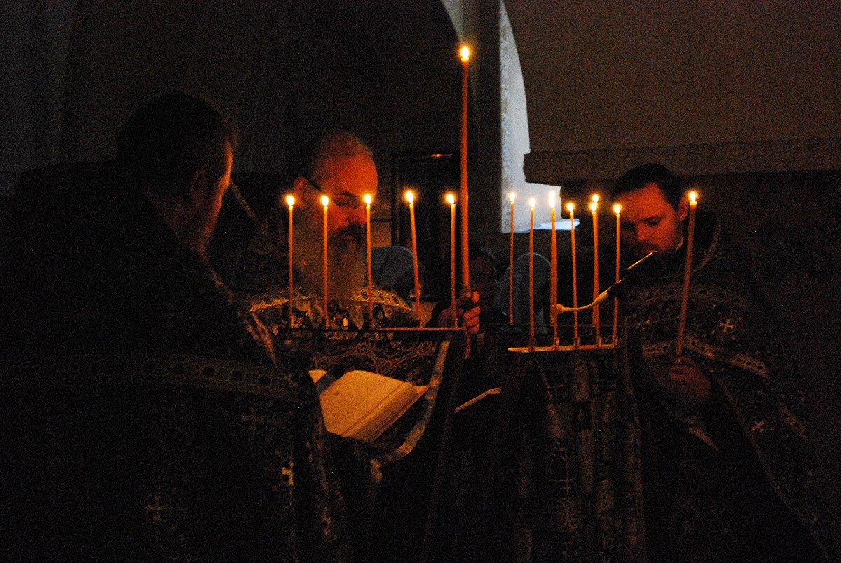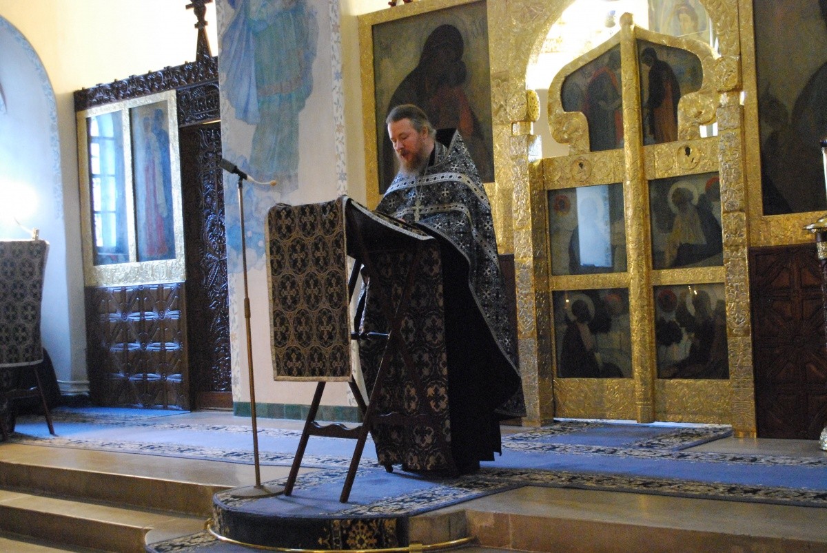 Житие преподобной Марии Египетской читал старший священник монастыря иерей Тихон Кречетов, которому сослужили во время богослужения протоиерей Александр Дубинин, иерей Дионисий Денисов и иерей Тихон Кречетов.