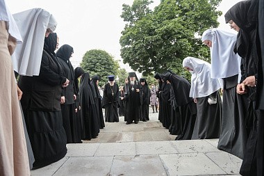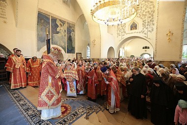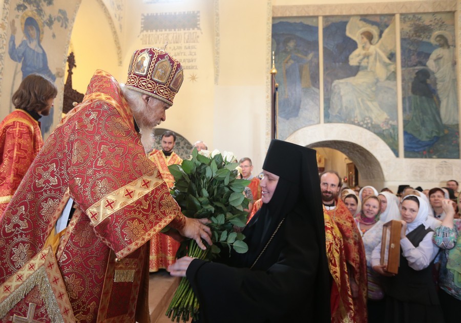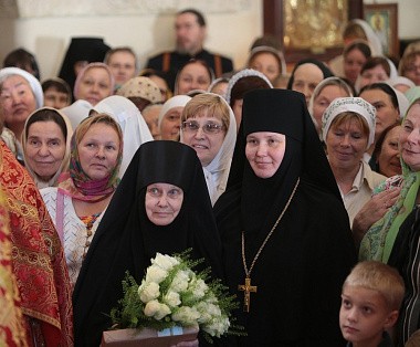 В Покровском храме Обители была совершена праздничная Божественная Литургия, которую возглавил епископ Орехово-Зуевский Пантелеимон. После совершения крестного хода Его Преосвященство передал матушке игумении Елисавете Патриашее поздравление с днем Ангела: