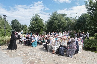 После праздничного чаепития гости Обители были приглашены на концерт солистов театра оперного пения им.Галины Вишневской. Послушать классический репертуар зарубежных и отечественных композиторов можно было в тени обительского сада у летней беседки.