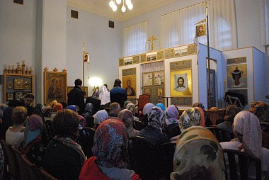 В этот же вечер в домовом храме Обители, освященном в честь святых праведных сестер Марфы и Марии, новоначальные христиане и те, кто только приступает к воцерковлению, собрались на встречу с председателем Синодального отдела по церковной благотворительности и социальному служению епископом Орехово-Зуевским Пантелеимоном.