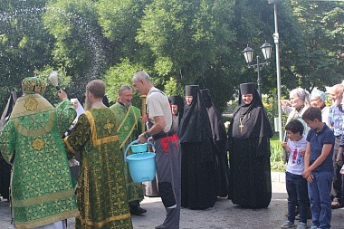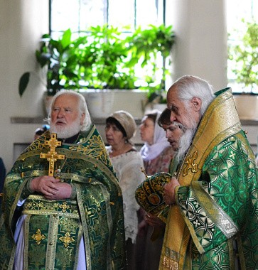 Архипастырю сослужили протоиерей Владимир Воробьев, иерей Михаил Асмус и клирики Марфо-Мариинской обители: старший священник иерей Тихон Кречетов, иереи Дионисий Денисов, Игорь Блинов и Александр Ильинский.