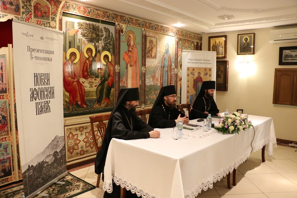 После приветственного слова иеромонаха Клавдиана редактор издательства «Орфограф» иеромонах Пантелеимон рассказал о книге. Рассказ он начал издалека, с изъяснения того, что такое «патерик», и о том, насколько нам важно не только знать заповеди, но и видеть конкретные примеры их исполнения. Примеры, собранные в «Новом Афонском патерике», относятся к новейшему времени – концу XIX, всему XX и началу XXI веков.