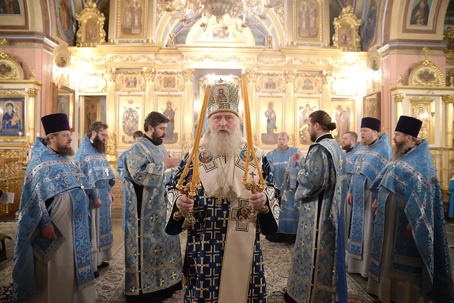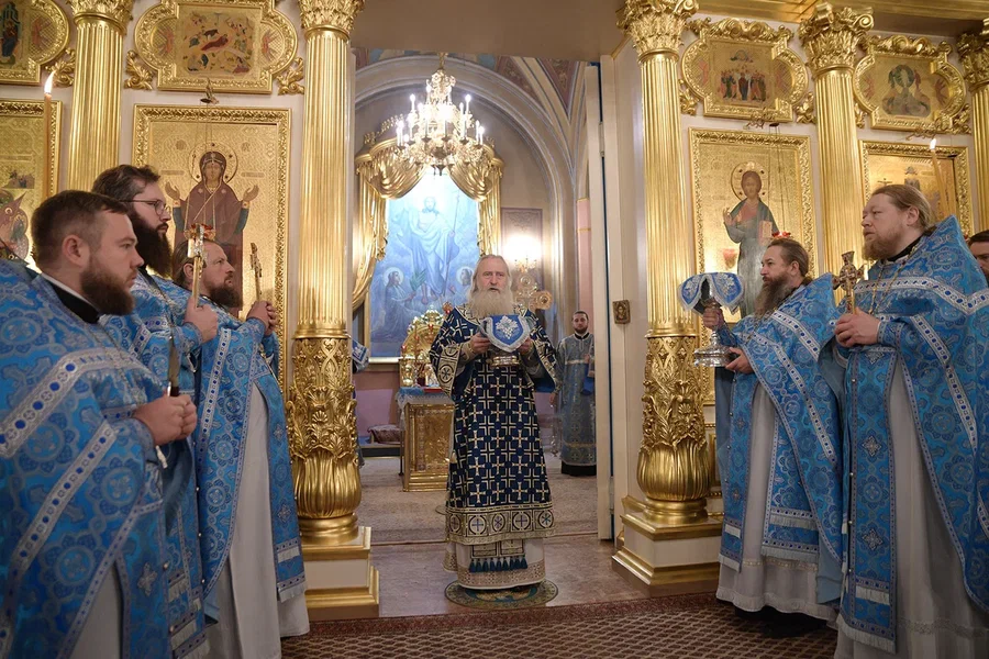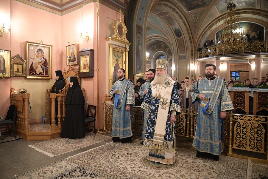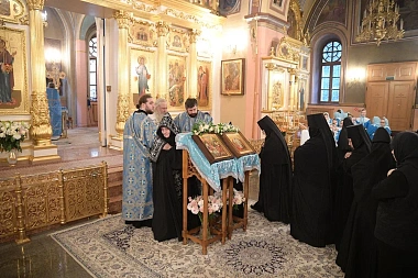 Его Высокопреосвященству сослужило духовенство монастыря.