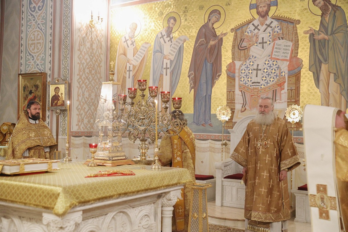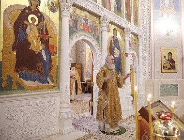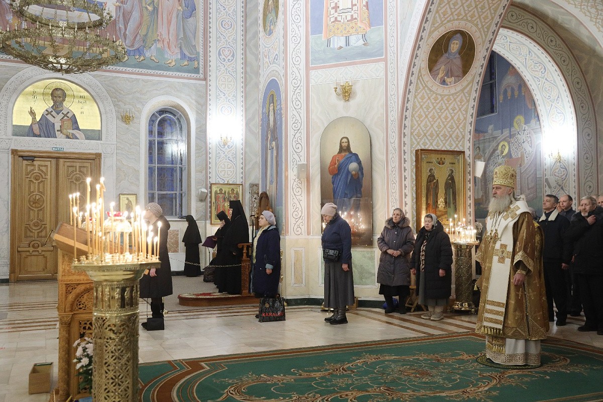 Затем владыка прошел в Покровский собор, где приложился к святым мощам преподобных Кирилла и Марии, родителей преподобного Сергия Радонежского.