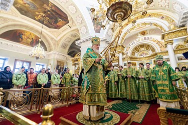 17 марта 2024 года, в Неделю сыропустную, воспоминание Адамова изгнания (Прощеное воскресенье), день памяти благоверного великого князя Даниила Московского (1303), Святейший Патриарх Московский и всея Руси Кирилл совершил Божественную литургию в Троицком соборе Данилова ставропигиального мужского монастыря г. Москвы.
