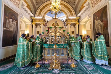 На сугубой ектении были вознесены особые прошения, Святейший Патриарх Кирилл прочитал молитву о Святой Руси.