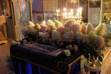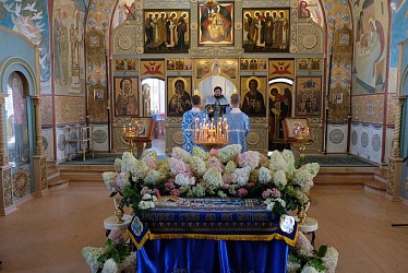 В сам день праздника в монастыре были отслужены две Божественные литургии: ранняя ночная в храме Успения Божией Матери для насельниц обители и поздняя в Никольском храме для паломников и гостей.