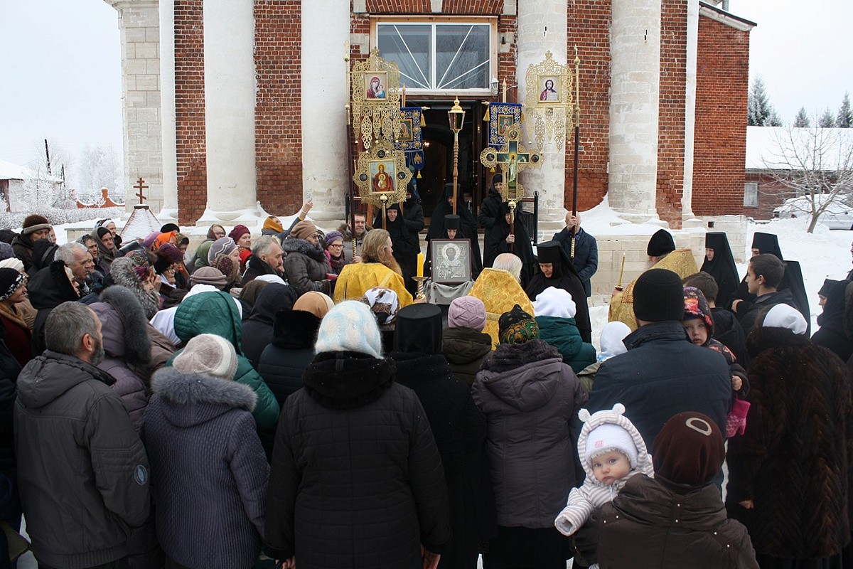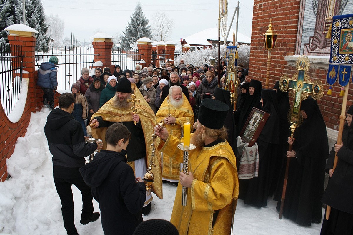 За праздничным богослужением молились настоятельница монастыря игумения Неонилла (Фролова) с сестрами и воспитанницами монастырского подразделения «Служба помощи семье и детям», а также прихожане, благодетели и паломники, прибывшие на престольный праздник обители из городов Касимова, Сасова, соседних сел и деревень.