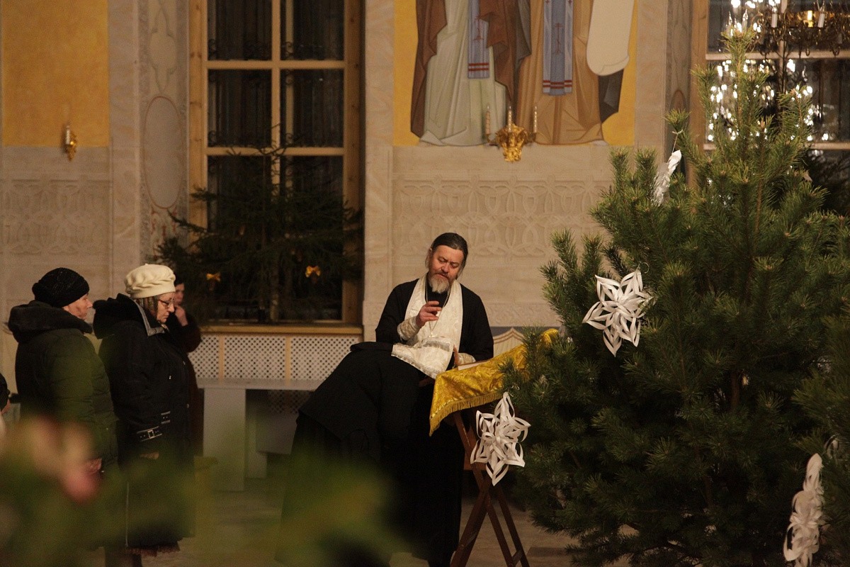 По окончании Божественной литургии иерей Владимир поздравил всех присутствующих с праздником Рождества Христова и зачитал рождественское послание Святейшего Патриарха Московского и всея Руси Кирилла.