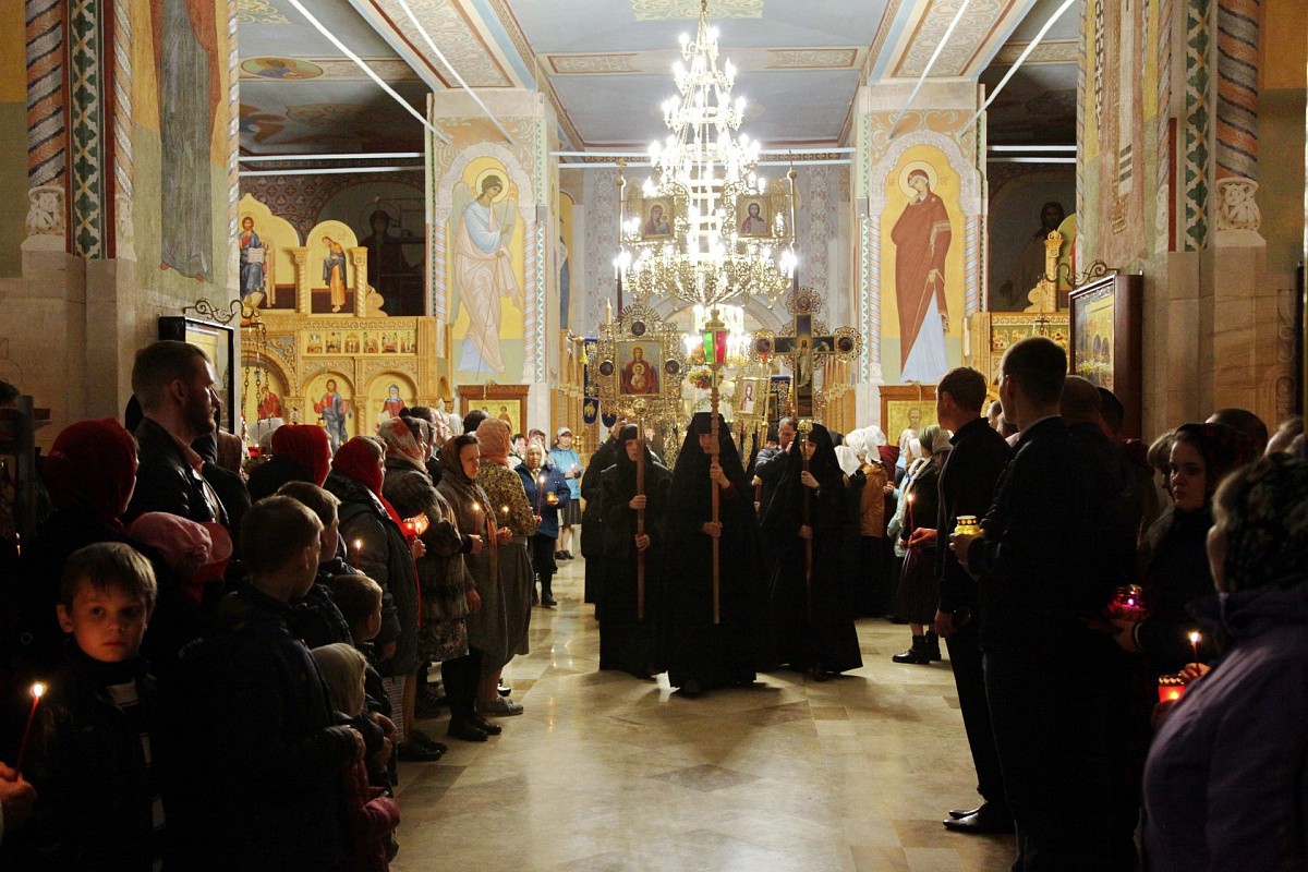С наступлением полуночи под пение стихиры «Воскресение Твое, Христе Спасе…» молящиеся совершили крестный ход, символизирующий шествие Церкви навстречу Воскресшему Спасителю.