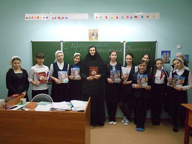 Накануне праздника сестрами-педагогами монастыря были проведены уроки основ православной культуры для учащихся Шостьенской средней общеобразовательной школы, посвященные святителю Николаю, и организована экскурсия по монастырскому комплексу.