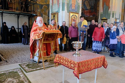 За богослужением молились настоятельница обители игумения Неонилла (Фролова) с сестрами и воспитанницами структурного подразделения «Служба помощи семье и детям», прихожане и паломники обители.