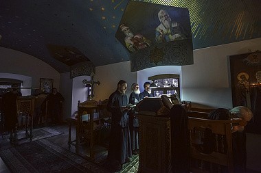 Росписи расчищали с помощью самых обычных бытовых «бритвочек», убирали грязь и ничего специально не подкрашивали – посчитали, что нужно сохранить именно историческую живопись. Если посмотреть на роспись, можно увидеть, что она вся такая блеклая, будто из прошлых веков. Изображение Спасителя, которое находится в центре, было только частично утрачено. Его пришлось восстанавливать по частям, и там видно, что и где писали заново. Потому что еще несколько лет назад на этом месте люстра висела. Мы уже забываем, что в келейном корпусе в советское время размещалось психоневрологическое отделение дома-интерната – в домовом храме тогда жили люди. Сейчас же, слава Богу, Никольский скит живет полноценной монашеской жизнью и у нас подвизается больше десяти человек насельников».