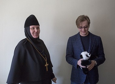 Для гостей настоятельница обители игумения Елисавета (Позднякова) провела экскурсию по отремонтированному зданию. На небольшой фотовыставке для сравнения были представлены снимки помещений до ремонта.