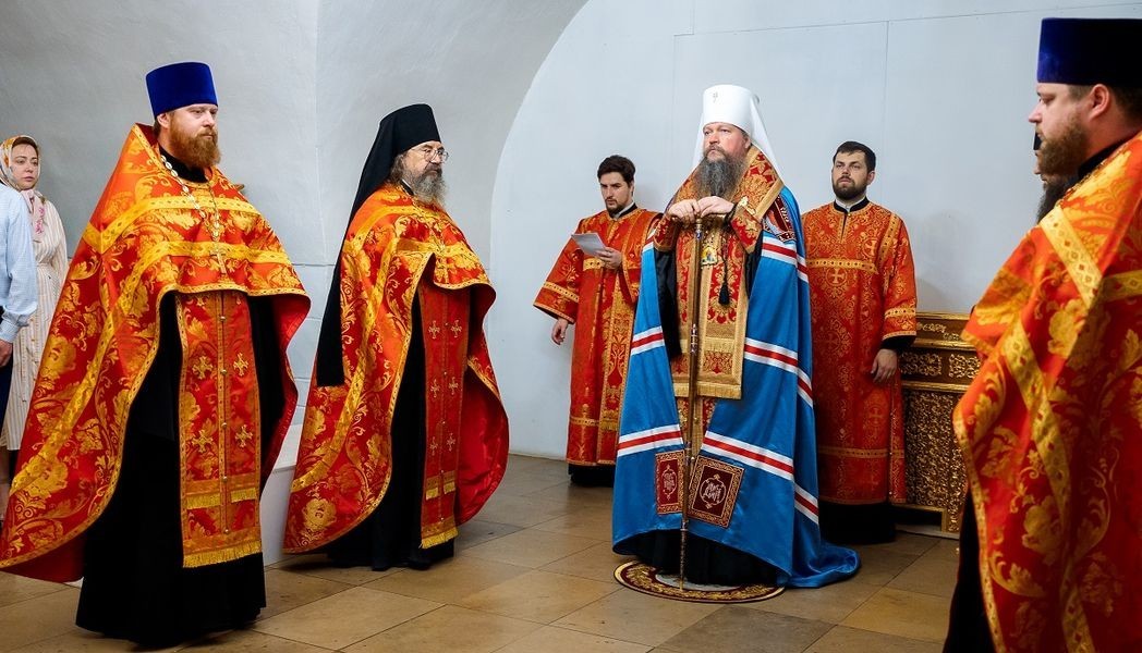В древней усыпальнице бояр Романовых в храме Романа Сладкопевца молебен совершил наместник Новоспасского монастыря митрополит Воскресенский Дионисий в сослужении братии и клириков обители.