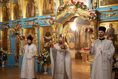 По запричастном стихе было зачитано Пасхальное послание Святейшего Патриарха Московского и всея Руси Кирилла архипастырям, пастырям, диаконам, монашествующим и всем верным чадам Русской Православной Церкви.