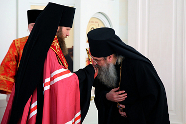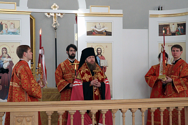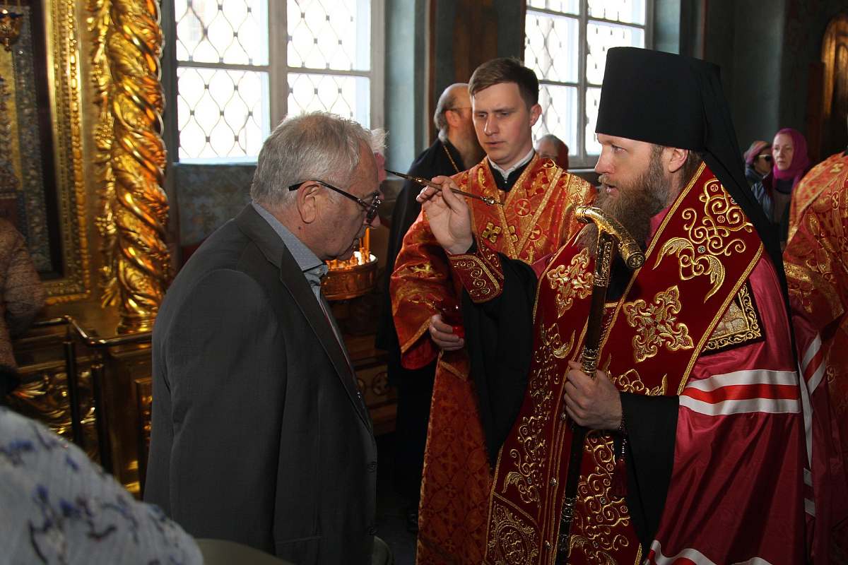 Его Преосвященству сослужил архимандрит Мелхиседек (Артюхин), настоятель храма святых апостолов Петра и Павла в Ясеневе г. Москвы, пресс-секретарь Синодального отдела по монастырям и монашеству.