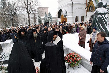 Епископ Савва обратился к собравшимся со словом, в котором отметил, что почивший Владыка много сил и трудов положил не только на дело возрождения монастыря, но, главное, и для духовного созидания паствы, которая с особой любовью во все времена устремляется к святыням этой древнейшей обители Москвы.